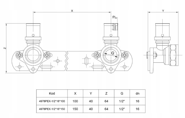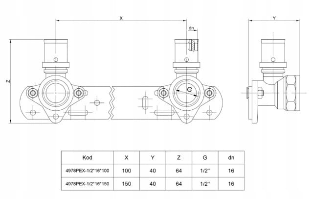 Listwa zespół montażowy zapras pex 16x1/2gw 100mm