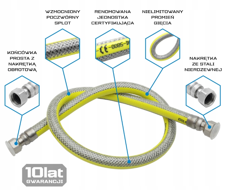 Nikogo nie trzeba przekonywać jak niezwykle ważna jest szczelna instalacja gazowa w naszym domu. Skuteczne podłączenie sprzętów na gaz nie tylko pozwoli uniknąć kłopotów z eksploatacją, ale zagwarantuje bezpieczeństwo nam i naszym najbliższym. Elastyczny wąż do gazu ziemnego został wykonany z stali nierdzewnej, pokrytej warstwą specjalnego tworzywa sztucznego, dzięki czemu zapewnia trwałość instalacji nawet podczas drgań czy skoków w transferze gazu, kompensując naprężenia powstałe podczas użytkowania.