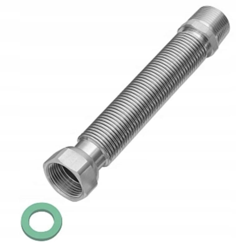 Giętko-rozciągliwe, elastyczne przyłącze wodne, stanowiące alternatywę dla połączeń sztywnych. Typowe zastosowania – instalacje sanitarne, przyłącza grzejników, przyłącza wodne kotłów i podgrzewaczy wody, zasobniki i zbiorniki wodne, woda użytkowa. Przewód wykonany jest z austenitycznej stali AISI304L, przyłącza: stal AISI304/mosiądz, uszczelka typu klingeryt.