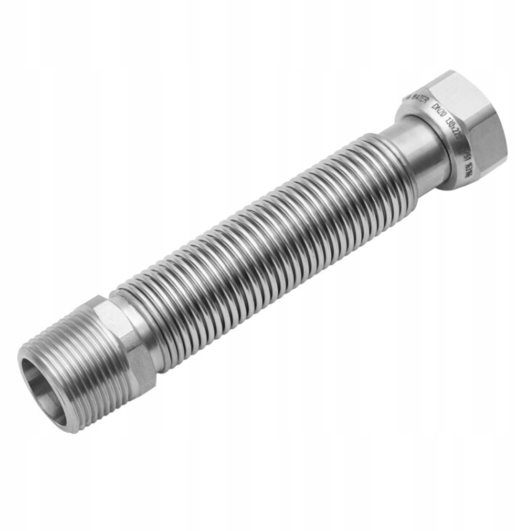Giętko-rozciągliwe, elastyczne przyłącze wodne, stanowiące alternatywę dla połączeń sztywnych. Typowe zastosowania – instalacje sanitarne, przyłącza grzejników, przyłącza wodne kotłów i podgrzewaczy wody, zasobniki i zbiorniki wodne, woda użytkowa. Przewód wykonany jest z austenitycznej stali AISI304L, przyłącza: stal AISI304/mosiądz, uszczelka typu klingeryt.
